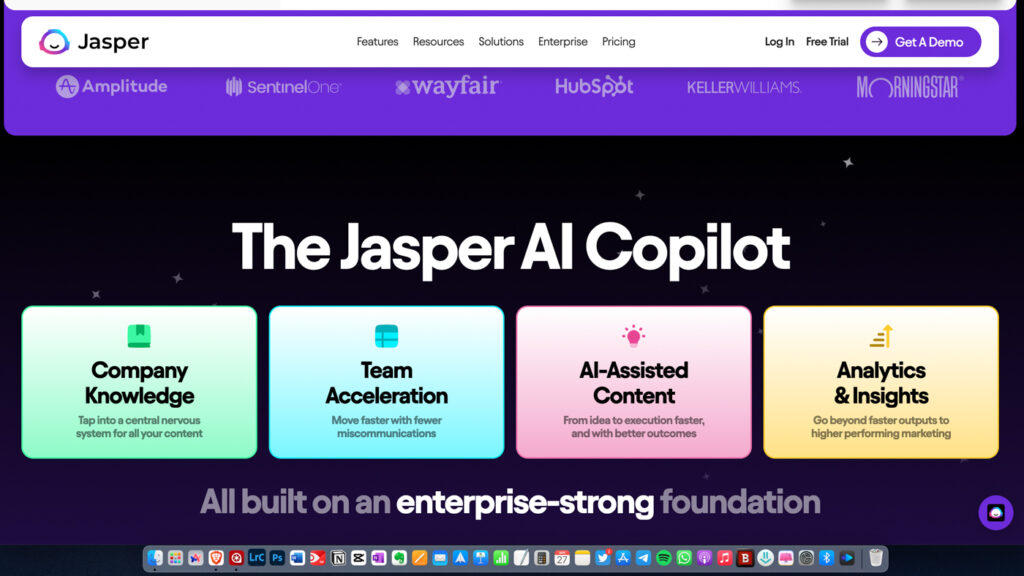 Jasper is a versatile tool that can assist individuals and teams in producing engaging and high-quality content across different formats like blog posts, social media captions, creative scripts, and more. Using advanced machine learning, Jasper can analyze your instructions and generate original text that meets your needs. Jasper’s core strengths lie in its adaptability and its ability to guide you throughout the entire content creation process, from brainstorming ideas to optimizing your content for search engines (SEO). So, with Jasper by your side, you can create outstanding content that engages your audience and boosts your business’s online presence.